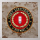 Introducing project “Military Insignia 3D”, featuring top quality military heraldry designs. Here you will find wrapped canvas and framed fine art prints decorated with rank insignia of a U.S. Marine First Lieutenant (USMC 1stLt). In the United States Marine Corps, a first lieutenant is a junior commissioned officer. It is just above the rank of second lieutenant and just below the rank of captain. It is equivalent to the rank of lieutenant (junior grade) in the other uniformed services. A second lieutenant (grade O-1) is usually promoted to first lieutenant (grade O-2) after 24 months in the Marine Corps. The difference between the two ranks is slight, primarily being experience and higher pay. It is not uncommon to see officers moved to positions requiring more experience after promotion to first lieutenant. For example, in the Marine Corps these positions can include leading a speciality platoon, or assignment as the executive officer for a company-sized unit (70-250 marines).