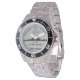 Has heft and feel of expensive stainless steel quartz watches. Good band with safety catch. I removed links, which is easy because engraved arrows show direction to push the linking pins. As always by this seller, the image (a railroad logo) is a perfect reproduction of my emailed image, and is precisely spaced and aligned.