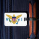 This luggage tag design features U.S. Virgin Islands Flag. The U.S. Virgin islands is made up of the islands of St. Thomas, St. John, St. Croix.