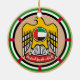 The flags of the United Arab Emirates and Dubai on crossed poles -- a great way to show where you or your ancestors are from, or to ingratiate yourself with the locals when you go there to visit. The back of this ornament displays the arms of the UAE.