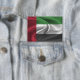 Button with the flag of UAE in wavy fabric style design. This design features the United Arab Emirates flag colours and design with a beautiful waving material textured effect. This flag design is a great way to show you are proud to be from UAE.