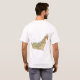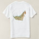 An editable title and slogan accompanies the vertical red band with green, white and black bands to the right of the Emirati flag on the front of this t-shirt. The back displays a detailed map of UAE.