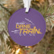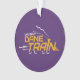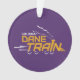 The UAlbany Dane Train logo features bold, angular typography with the words "Dane Train" in large, purple capital letters. Above it, "UAlbany" is written in a smaller, golden font. The design incorporates the silhouette of a train, with smoke billowing from the smokestack. The train's wheels are represented in gold, giving the appearance of movement, and golden streaks on the left emphasize speed and momentum. The logo exudes a dynamic and energetic vibe, combining elements of strength and motion, reflecting a sports or team spirit.