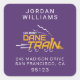 The UAlbany Dane Train logo features bold, angular typography with the words "Dane Train" in large, purple capital letters. Above it, "UAlbany" is written in a smaller, golden font. The design incorporates the silhouette of a train, with smoke billowing from the smokestack. The train's wheels are represented in gold, giving the appearance of movement, and golden streaks on the left emphasize speed and momentum. The logo exudes a dynamic and energetic vibe, combining elements of strength and motion, reflecting a sports or team spirit.