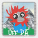Fun sticker with a chubby troll with knitted nose. Uff da written across his feet. byEML