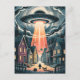 UFO Abduction Night Street Illustration Postcard