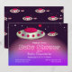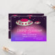 A baby shower invitation showing a Mothership and a baby UFO. The two are floating in space. Two major colours are magenta and purple. The text is all customisable. The back of the invitation has a flying saucer pattern.