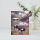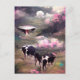 Unsuspecting black and white Holsteins grazing in a field while a spaceship hovers in the distance. Just another typical cow abduction on the old MacDonald farm. Wombo Dream AI and artist collaboration.
