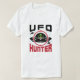UFO hunter design is funny gift for men, women or teens who love to search for aliens, extraterrestrials or UFOs. Green alien in flying saucer design is perfect to wear to alien or UFO convention