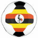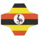 The flag of Uganda (Luganda: Bendera ya Uganda) was adopted on 9 October 1962, the date that Uganda became independent from the British Empire. It consists of six equal horizontal bands of black (top), yellow, red, black, yellow, and red (bottom); a white disc is superimposed at the centre and depicts the national symbol, a grey crowned crane, facing the hoist side.