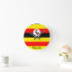 The clock did not take as long to arrive as I thought it might and was extremely well packaged. I didn't do the measurements so I didn't realize it is a little smaller than the average clock but that does not matter (just make sure you check if that's important to you).It is really nifty! It seems very solid and well made not flimsy at all. It has been going well and has kept good time in its few weeks on my wall. Nice product. Gets noticed too! Nicer in real life than the picture but true to the picture