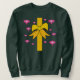 Super UGLY sweatshirt sweater with large golden bow and ribbon with bright pink ornaments. Great for a guy or girl and make a great gift! Hand drawn illustration by McBooboo.