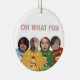 Ugly Christmas Sweater personalised with your face Holiday card in a knitted sweater design .. customisable ornaments for fun holiday season decor from Ricaso. Tis the season to get ugly! This Ugly Sweater Party happy holidays Christmas tree ornament is the perfect way to kick off the holiday celebrations. Add your own text to the back and four face photographs to this fun 'Oh what fun' Ugly Christmas sweater holiday decoration - also available with three and two template options in store