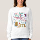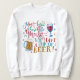I don't know if there'll be merlot - but have a cup of beer! This Ugly (yet cute) Christmas Sweater plays off the words to "Holly Jolly Christmas" with a drinking theme. It has unique, whimsical typography, complete with a wine and beer glass, snowflakes and music notes. Celebrate your love of the holidays and a nice drink or two with this humourous sweatshirt.