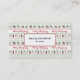 Business cards with a repeating pattern in the background, in an ugly Christmas sweater style. The pattern is composed of socks, christmas balls, stars and snowflakes. With repeating Merry Christmas text in red. Fun and festive.