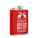 Well made flask, a little better than I had expected. Flask came in clear plastic box which gave it a nice presentation when I took it out of the zazzle packaging. Image is not printed on flask but on sticker. Don't know how this will hold up I haven't used it yet. This would make a Great gift! I plan to purchase more for friends! Cheers. I thought a little brighter than computer. Very crisp, writing wasn't