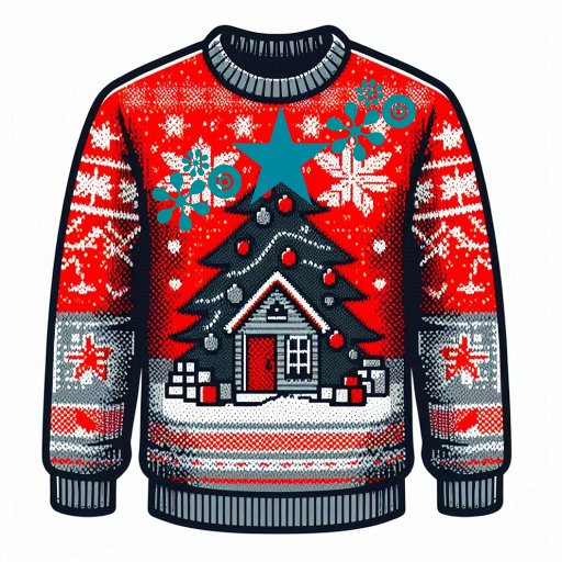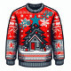 A fun design featuring an ugly Christmas Sweater, Christmas trees too. Customize as desired.
