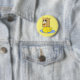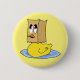 Poor little ugly duckling. Button features a yellow background with a bright yellow duck swimming on blue water and wearing a brown paper bag on his head.