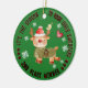 Reward the winner of your Ugly Christmas Sweater Party with this cute ornament featuring a whimsical woodland Reindeer on a green background with flying snowflakes around! It was hand-painted to fit a green background.