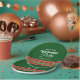This Ugly Sweater Christmas Party paper plate features a dark green background accented with a Nordic knit design to look like an ugly Christmas sweater. Customisable text allows you to add your name and party date.