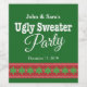 This Ugly Sweater Christmas Party wine label features a dark green background accented with a Nordic knit design to look like an ugly Christmas sweater. Customisable text allows you to add your name and party date.