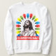 Really tacky Christmas shirt featuring Jesus looking up at a halo of tree lights, personalized with your text, perfect for your office ugly sweater day or any day during the winter holidays.