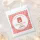 This unique, whimsical Christmas Ugly Sweater party thank you favour bag was crafted with a touch of humour and charm. Featuring a hand-illustrated design, the reverse showcases a festive pattern adorned with Santa's reindeer, soft snowflakes, and Christmas trees, all rendered in a cosy, fleece-like texture.