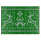 Green knitting pattern in ugly sweater style with jingle bells and Christmas reindeers