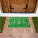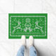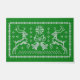 Green knitting pattern in ugly sweater style with jingle bells and Christmas reindeers