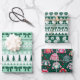 This set features three ugly sweater Christmas patterns, two are faux knit designs in mint green, dark green and white with bows, Christmas trees, holly and berries and snowflakes, while the thrid design are cute hand illustrated ugly sweaters that have Santa, reindeer, Christmas trees, snowmen and more on a dark green background. See the whole matching collection.