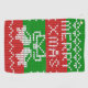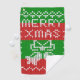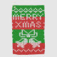 Knitting pattern in ugly sweater style with jingle bells and Merry Xmas text