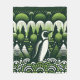 This piece is a striking visual symphony of nature and geometry, where a penguin stands amidst a stylised forest. Layered patterns of foliage, set against a tapestry of polka dots and graphic shapes, create a rich texture and depth. The design uses a bold green palette to evoke the lushness of the natural world while embracing the clarity and order of modern design. Ideal for lovers of nature and contemporary art, this design seamlessly marries the organic with the geometric, making it a sophisticated and dynamic addition to any collection.