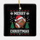 Ugly Xmas Sweater Style Santa American Football Ceramic Ornament