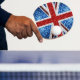 Sparkly UK United Kingdom flag in red, white and blue faux sparkles glitters. We use photo of sparkles and not actual glitters.