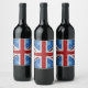 UK flag red blue white sparkles glitters Wine Label