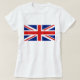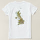 The front of this t-shirt boldly displays the British flag with its distinctive white fimbriated regular and diagonal red crosses on a blue background. This is matched at the back by an attractive map of UK.