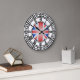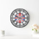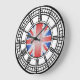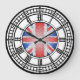 uk london big ben clock. Based on the iconic clock tower of Big Ben in London, this black and white, iron work clock face with roman numerals in gothic, victorian style also has a modern twist featuring the union jack flag of the United Kingdom in stained glass pattern in the centre. This great classic icon will look good on your walls or as a souvineer of London in 2012 onwards.