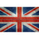 British Union Jack Ensign flag scale 3:5 with a Vintage Retro or Grungy texture. The present design of the Union Flag dates from a Royal proclamation following the union of Great Britain and Ireland in 1801. The flag combines aspects of three older national flags: the red cross of St George of the Kingdom of England, the white saltire of St Andrew for Scotland (which two were united in the first Union Flag), and the red saltire of St Patrick to represent Ireland.
