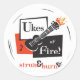 Ukes of Fire! Strum & Burn Round Sticker! Purchase 20, 1-1/2 " stickers or 6, 3" stickers per sheet. Get 'em. They're hot!