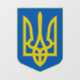 Patriotic Ukrainian coat of arms. Coat of Arms of Ukraine. Lesser Coat of Arms of Ukraine, the so called Tryzub. A stylised trident symbol in gold on a background shield of blue.