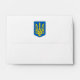Patriotic Ukrainian coat of arms. Coat of Arms of Ukraine. Lesser Coat of Arms of Ukraine, the so called Tryzub. A stylised trident symbol in gold on a background shield of blue.