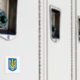 Patriotic Ukrainian coat of arms. Coat of Arms of Ukraine. Lesser Coat of Arms of Ukraine, the so called Tryzub. A stylised trident symbol in gold on a background shield of blue.