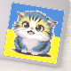 Adorable Sticker with Ukraine Flag and Cute Kitten.