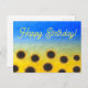 Ukraine geometry mesh pattern Flowers Birthday Postcard. Elegant and cool Triangle geometric mesh with yellow and blue Ukraine colors gradient with Sunflowers.