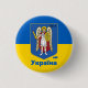 Button: Ukraine & Kyiv City Coat of Arms, Ukrainian Flag with emblem of the capital city / Україна