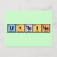 Here we have the word Ukraine made up from the following elements of the periodic table: Uranium, Potassium, Radium, Iodine and Neon.