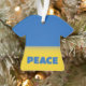 Peace on one side and the year on reverse on a blue and yellow Christmas ornament to show support for peace in Ukraine.