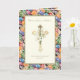 Featuring a gold cross with a white Easter lily overlay and colourful Ukrainian Easter egg border. A scripture verse is also below the cross.