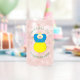 Personalised beer or can glass shows an angel dressed in the flag of Ukraine. All around the Ukrainian angel are green letters for a name, holiday and year. But you can write any text you wish. The green is for Christmas. Great Christmas or housewarming gift. Lovely addition to your holiday decorating or Christmas decor.