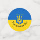 Table confetti with the flag of Ukraine, a blue and yellow flag with the Ukrainian coat of arms (emblem) with a trident in the centre, and a custom text template for your message